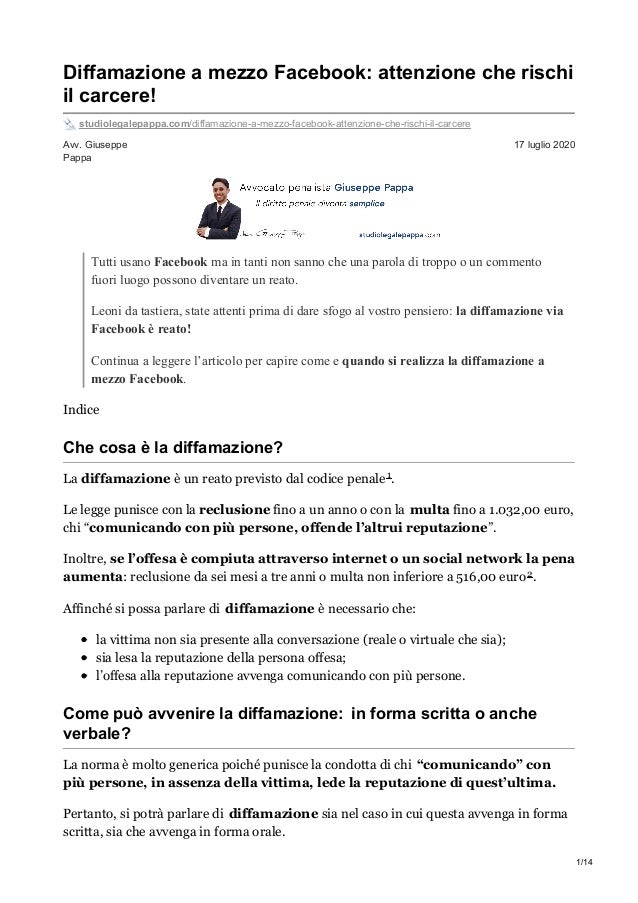 Opinioni su reato diffamazione a mezzo lettera Qui trovi opinioni relative a reato diffamazione a mezzo lettera e puoi scoprire cosa si pensa di reato diffamazione a mezzo lettera. Oltre a dare la tua opinione su questo tema, puoi anche farlo su altri termini relativi a reato, diffamazione, mezzo, lettera, prescrizione reato diffamazione, reato di diffamazione e reato di calunnia e ...